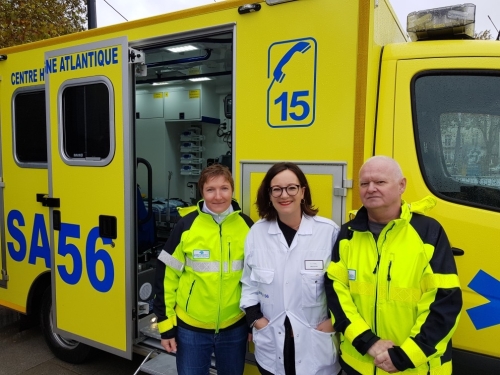 Dans les hôpitaux, le SAMU 56 et les véhicules du SMUR sont apparues un cours moment gyrophares et sirènes hurlantes pour souligner l'URGENCE de la prise en charge des victimes d'AVC.