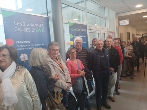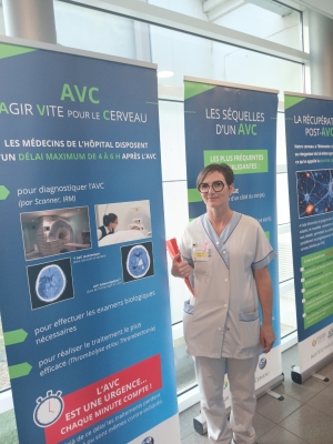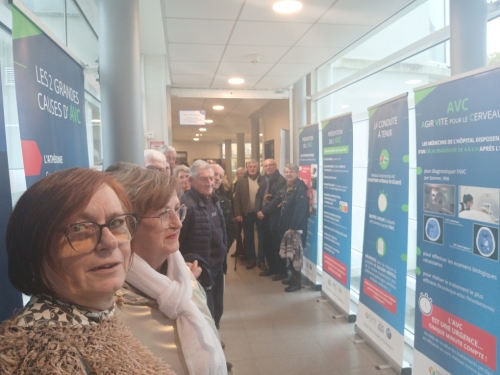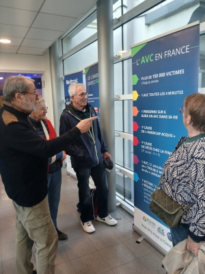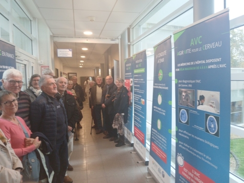 Le 29 octobre, France AVC 56 a animé une exposition itinérante AVC : 14 totems pédagogiques placés en enfilade dans les halls de 2 hôpitaux et 1 clinique, le matin ou l'après-midi). Environ 5 groupes de 30 personnes par établissement ont reçu des commentaires et explications au micro devant chaque totem … Les participants ont pu apprendre ce qu'est un AVC, les signes d'alerte, l’Urgence d’appeler le 15 (VITE le 15), les traitements à l’hôpital, les séquelles, la rééducation post-AVC, le retour à domicile, etc., de façon simple et convivial, tout en pouvant interagir et questionner l’animateur (M. Patrick Geindre, Trésorier de France AVC 56 et Vice-président de la Fédération Nationale France AVC)